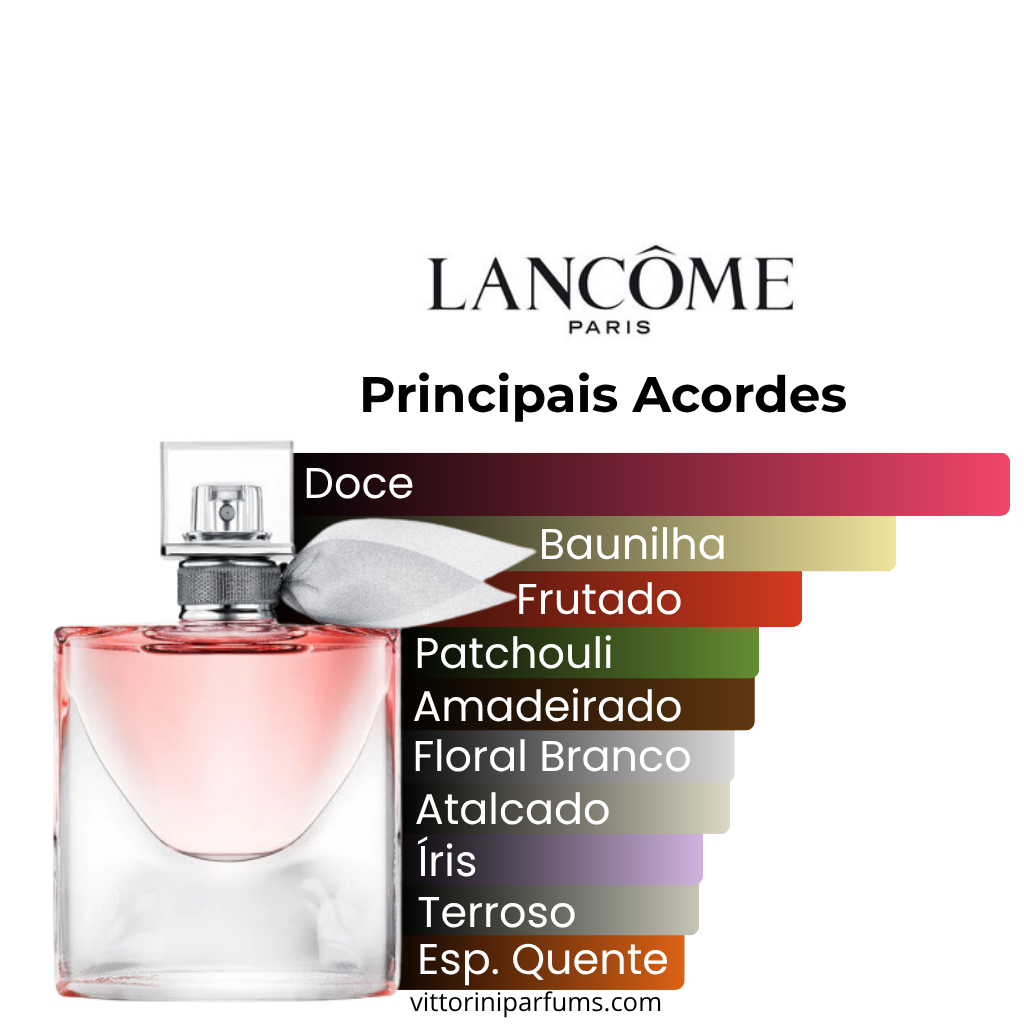 La Vie Est Belle é uma celebração da felicidade e da liberdade, combinando notas doces e florais com um fundo gourmand e sofisticado.