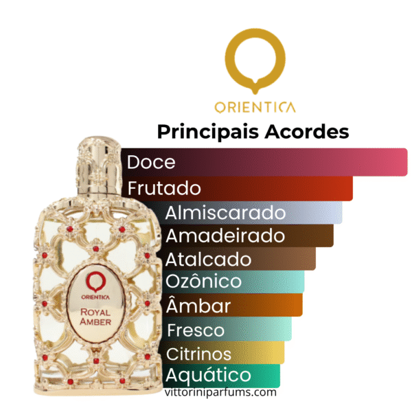 Royal Amber é uma fragrância rica e envolvente que combina notas ambaradas quentes com toques orientais e especiados.